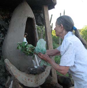 "QUERIA COMENTARLES QUE ESTAMOS TERMINANDO LA GRUTA PARA LA VIRGEN DE GARABANDAL, TAMBIEN ESTAN EN ELLA LA VIRGEN DE FATIMA Y LA DE MEDYUGORE QUE VINO DE ITALIA. LA GRUTA TIENE DOS CASCADAS DE AGUA. ESTA LLENA DE CARACOLES Y DETALLES, TIENE UNA CONCHA ENORME QUE ME REGALO LA MAMA DE MARA, Y UNAS HADAS PRECIOSAS, QUEREMOS RODEARLAS DE PLANTAS Y BUENO FALTA EMBELLECER UN POCO MAS, YA PLANTAMOS FLORES. EL REZO DEL ROSARIO ES TODOS LOS DIAS A LAS 19:OO HS. JUNTO CON HERMOSAS ANCIANAS DE LA ZONA QUE VIENEN A REZAR CON DEVOCION, CADA UNA AL VENIR TRAE ALGO PERSONAL PARA PONER EN LA GRUTA. ESTAMOS CONTANDO LA HISTORIA DE GARABANDAL, PORQUE LA DE FATIMA LA CONOCEN BASTANTE BIEN. LA PERSONA ENCARGADA DE PONER LA IMAGEN DE LA VIRGEN DE GARABANDAL EN LA GRUTA SE LLAMA DOÑA CHINA Y TIENE 78 AÑOS, TRAJO FLORES PARA PLANTAR Y NO FALTA A UN SOLO REZO. ES UN SOL DE PERSONA. AHORA LES ENVIO ALGUNAS FOTOS. CON UN INMENSO AMOR Y DECIRLES QUE LOS EXTRAÑO CON TODO MI SER. LOS AMO. -CHANTAL-"