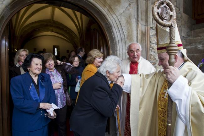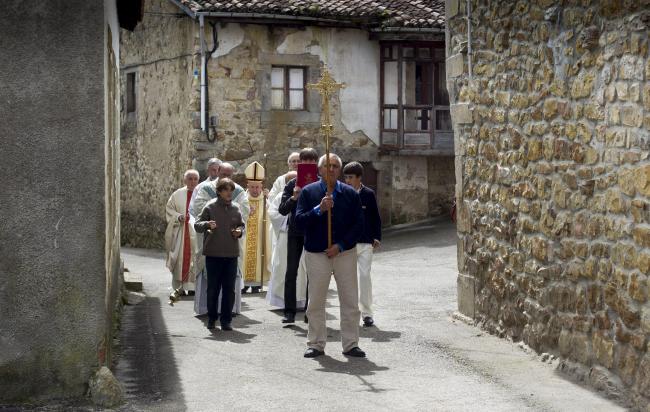 Señor Obispo: En nombre de esta comunidad parroquial le expreso el gozo que sentimos por su presencia aquí y en este día tan significativo. Es para todos una profunda alegría el sentirnos arropados por su presencia de pastor en medio de este pequeño rebaño, parte de la grey de la Diócesis de Santander que usted con tanto celo y amor sirve. Queremos compartir con nuestro señor obispo la historia y el significado de este templo parroquial, es para nosotros el ayer el hoy y el mañana de la fe que ha dado sentido a nuestro caminar personal y colectivo. Hemos trabajado con interés y preocupación para que este templo siga en pie, y hoy su presencia nos ayuda y anima a sostener y renovar el templo espiritual, que como piedras vivas formamos los cristianos. El contratista le ha entregado las llaves de este templo como gesto de que usted como pastor abra las puertas de esta Iglesia, para que en ella sigamos celebrando la fe en el Dios de Jesucristo, animados siempre por el Espíritu Santo y bajo la mirada maternal de la Madre del Cielo. Aquí nacieron nuestros antepasados a la vida de Dios, y aquí hemos nacido y nacerán los futuros cristianos. En este templo celebramos el Sacramento de la Eucaristía, cumbre y cima de la vida cristiana, y desde él todos los demás sacramentos