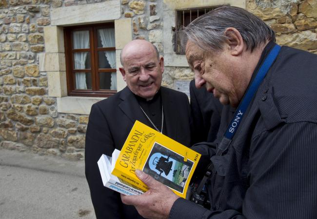 D. Albretch Weber (testigo ocular de las apariciones) regala un ejemplar de su libro al Sr. Obispo de Santander