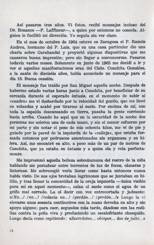 El P. Luna fue testigo del éxtasis de Conchita el día del segundo mensaje en Garabandal (18 de Junio 1965)