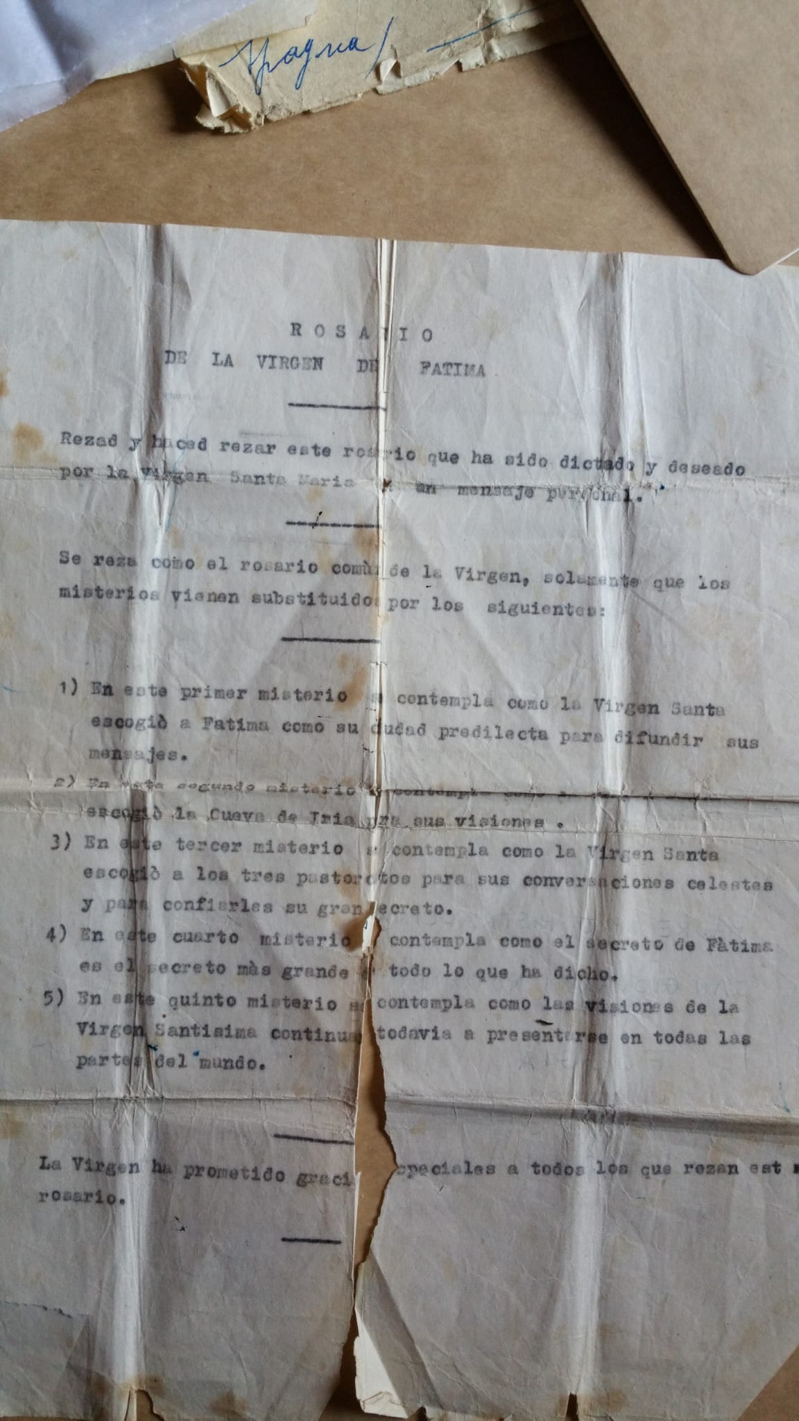 Texto original que vino dentro del sobre con la carta del P. Pío