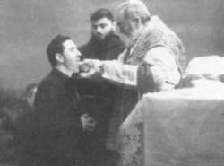 Al darme la absolución, los ojos comenzaron a rodarme en la cabeza. Me restregué los ojos con las manos, mientras la cabeza me daba vueltas y más vueltas. De repente, mi mente se aclaró total y completamente. Entonces puso su mano estigmatizada sobre mis labios y yo besé los estigmas. Me dio entonces un ligero golpe en la cara y me dijo en italiano: «Joey, un poco de paciencia y coraje y vas a estar bien».